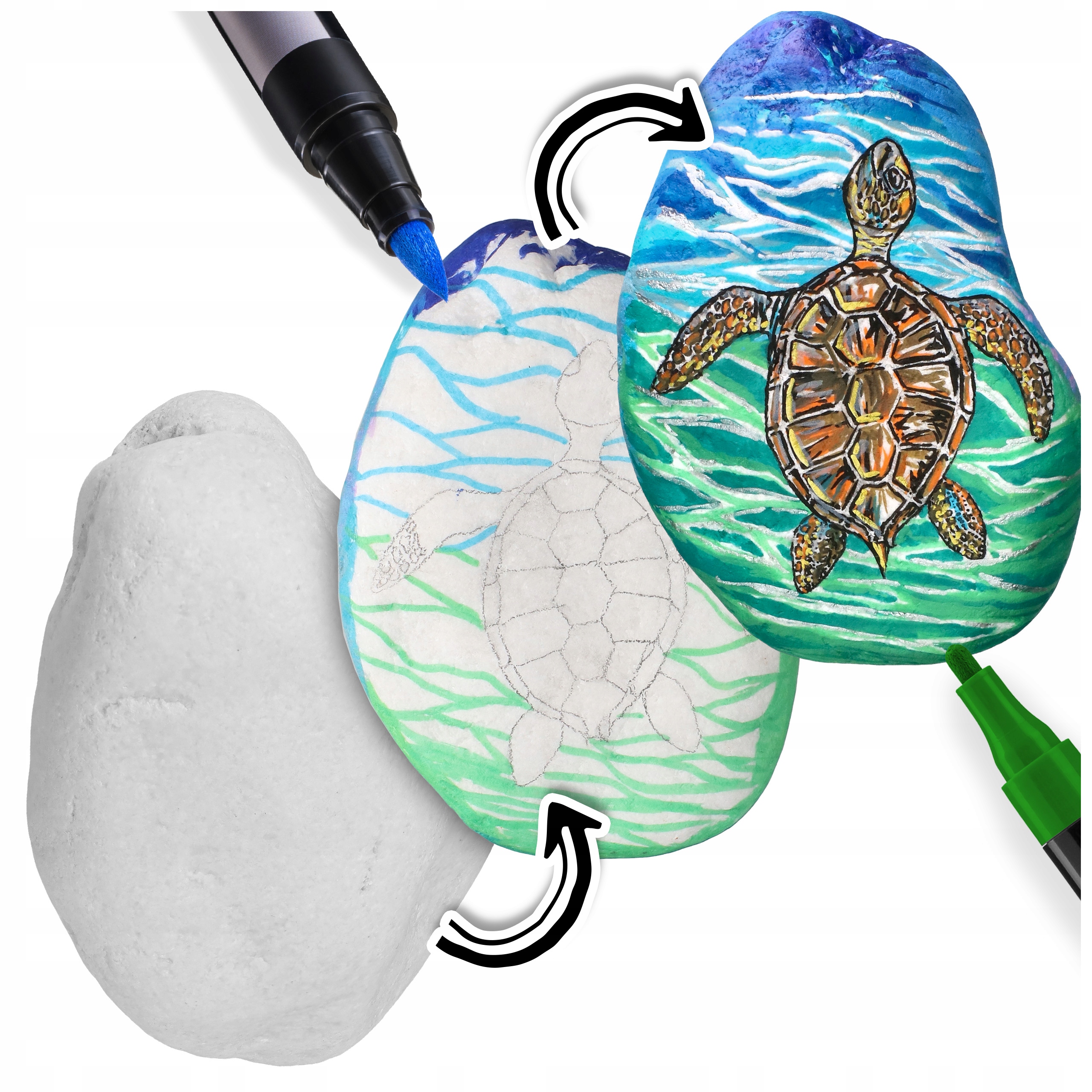 Markery Acrylic Paint są idealne do uzyskania jednolitego, pełnego krycia, natomiast markery Acrylic Brush oferują większą elastyczność i precyzję, umożliwiając tworzenie różnorodnych efektów pędzelkowych. Obie opcje pozwalają na eksplorowanie różnych stylów malowania, co pozwala każdemu użytkownikowi wyrazić własną kreatywność na kamieniach.