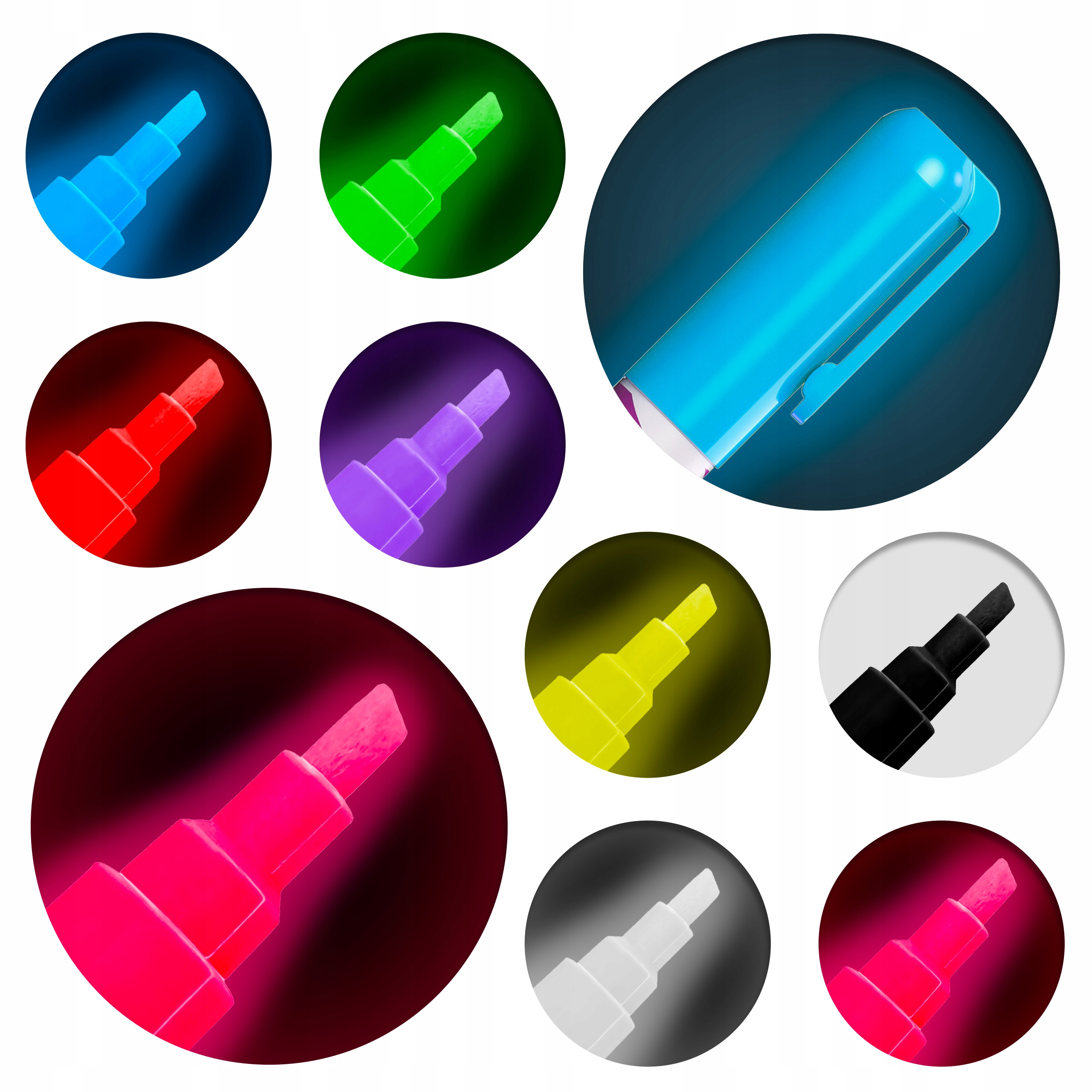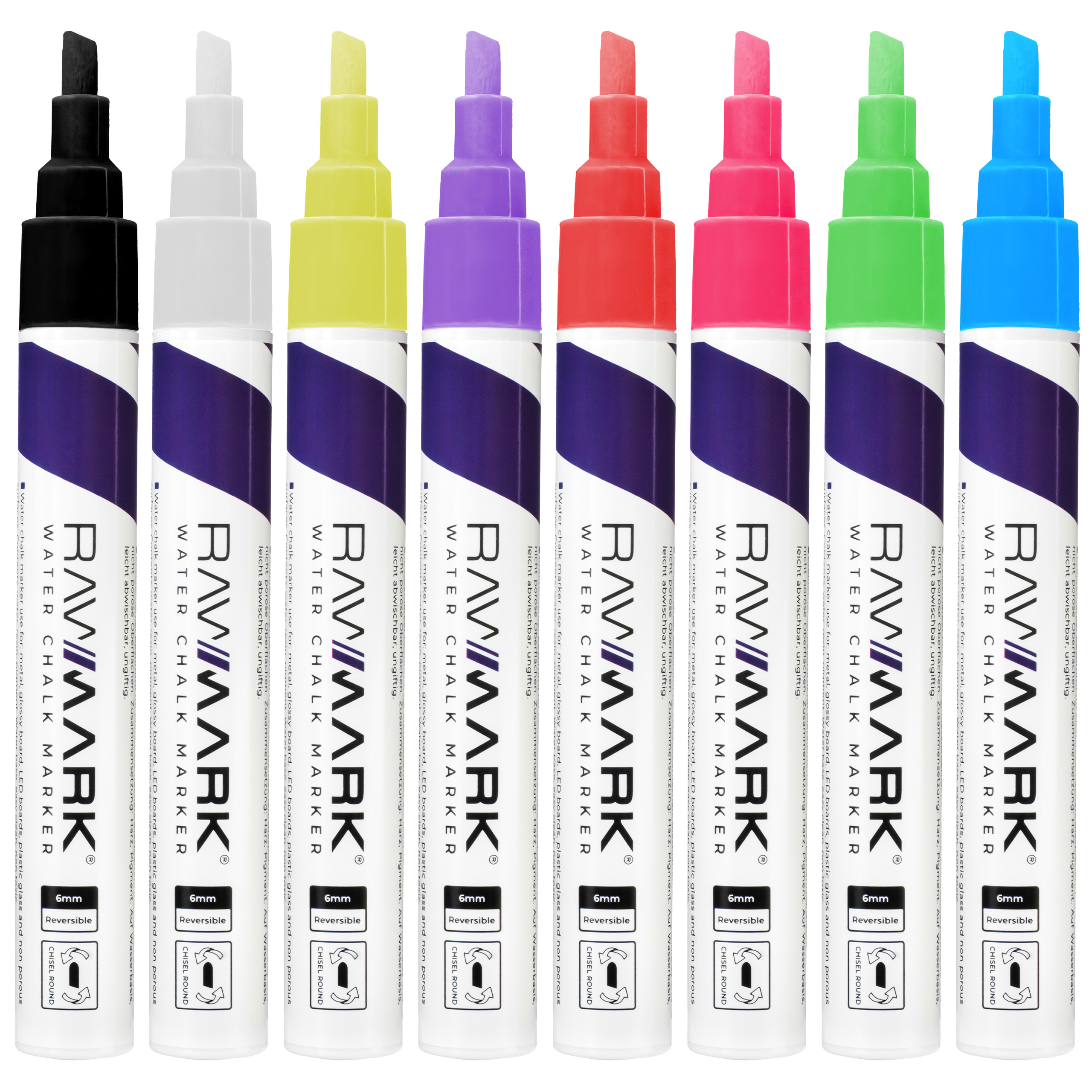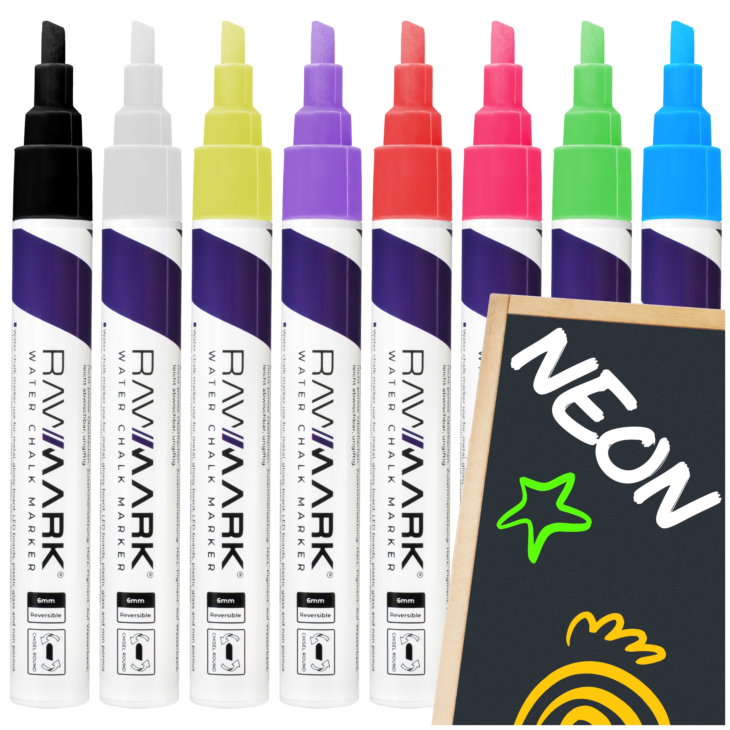 Markery KREDOWE do tablic szkła pisaki RAWMARK 8 kolorów NEON świecą w UV