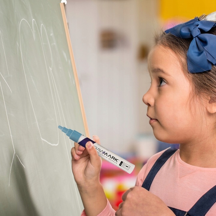 ▶  W środku markera znajduje się płynna kreda na bazie wody, dzięki czemu szybko wysycha i po wyschnięciu przypomina tradycyjną kredę.